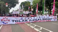 Aksi yang digelar KSPN itu mengusung tema “Berantas illegal import, selamatkan industri produsen dalam negeri untuk selamatkan pekerja dari PHK.” (sultan)