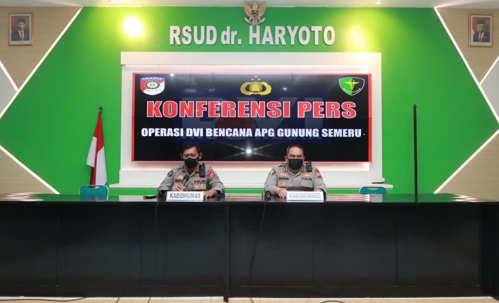 Bidang Kedokteran dan Kesehatan (Biddokkes) Polda Jatim, kembali merilis hasil identifikasi Jenazah korban bencana Awan Panas Guguran (APG) Gunung Semeru, di RSUD dr. Haryoto Lumajang, pada Jum’at (17/12/2021).