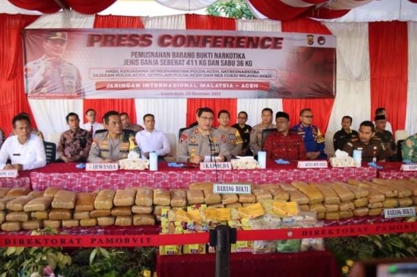 “Barang bukti yang kita musnahkan hari ini adalah hasil dari pengungkapan tahun 2022. Namun, jumlahnya hanya sebagian, karena yang lainnya dimusnahkan di Mabes Polri dan di jajaran selaku pihak yang terlibat dalam pengungkapan,” kata Ahmad Haydar, dalam konferensi pers di Polda Aceh, Jumat, (23/12/2022).