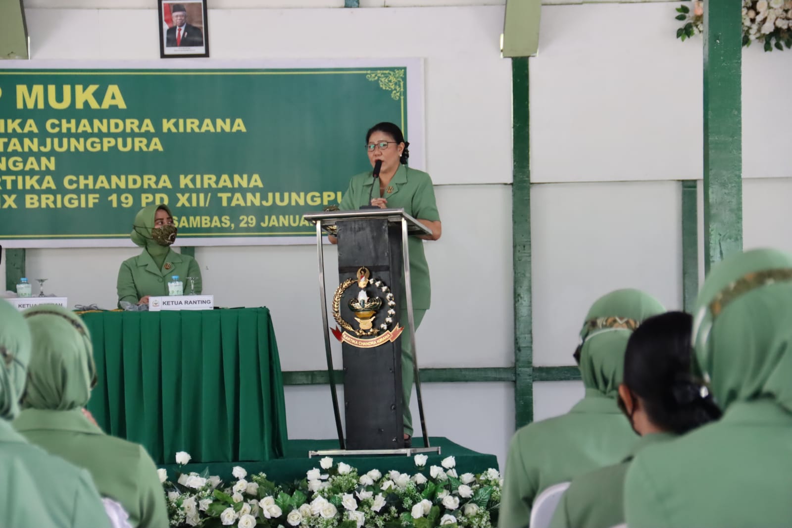 Istri Pangdam XII/Tpr ini berpesan, apabila ada permasalahan baik dalam organisasi maupun rumah tangga agar segera menyampaikan kepada Ketua Ranting, sehingga permasalahan yang terjadi akan cepat terselesaikan dan tidak menimbulkan keributan di dalam organisasi.