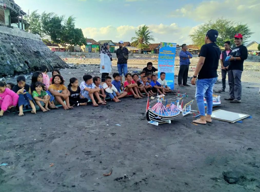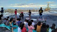 Banyuwangi, potensinusantara.co.id- Anak-anak di Muncar, Banyuwangi, Jawa Timur tampak antusias menyimak edukasi yang dipaparkan di pinggir pesisir Kalimoro. Begitu asyik, karena dilengkapi alat peraga replika perahu nelayan, gambar ikan, dan berlangsung di tempat terbuka.