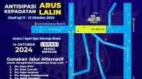 * Arus lalu lintas dari Jalan H. Hambali dan Jalan RTM yang mengarah ke Jalan Komjen Pol M Jasin dialihkan/diluruskan