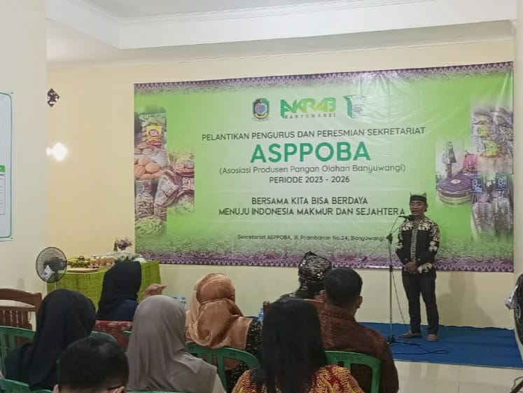 Banyuwangi, potensinusantara.co.id – Asosiasi Produsen Pangan Olahan Banyuwangi (ASPPOBA) gelar pelantikan pengurus baru yang dihadiri 42 anggota ASPPOBA se-Kabupaten Banyuwangi periode 2023-2026, Kegiatan berlokasi di Jalan Prambanan No. 24 Banyuwangi, pada Senin (30/01/2023).