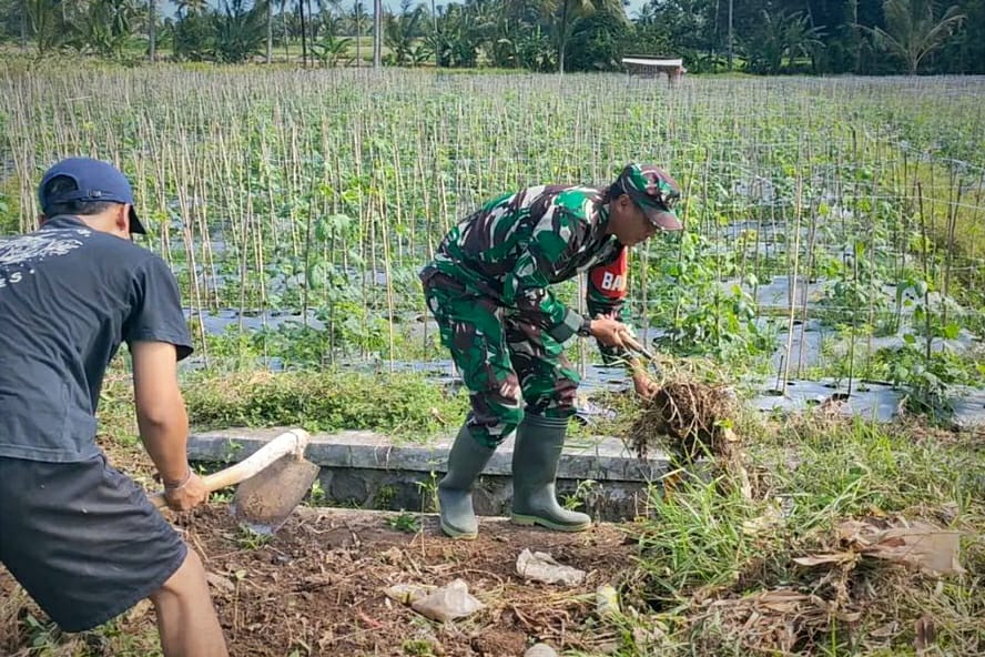 Banyuwangi, potensinusantara.co.id – Babinsa Koramil 0825/19 Sempu Desa Temuasri Serka Edi Santoso membantu warga kerja bakti pembersihan jalan yang akan di pasang paving di Dusun Tapaklembu, Desa Temuasri, Kecamatan Sempu, Kabupaten Banyuwangi, Jawa Timur.