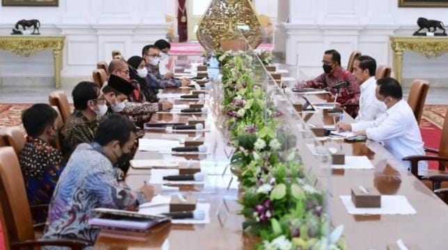 Presiden RI Joko Widodo (Jokowi) menerima Ketua dan Anggota Komisi Pemilihan Umum (KPU) di Istana Merdeka, Jakarta, Senin (30/05/2022). Dalam pertemuan tersebut, KPU melaporkan perkembangan penyelenggaraan pemilihan umum, terutama untuk persiapan penyelenggaraan Pemilu 2024, di antaranya terkait dengan anggaran atau pendanaan pemilu, fasilitas sarana dan prasarana pemilu, dan hubungan untuk personel penyelenggaraan pemilu.