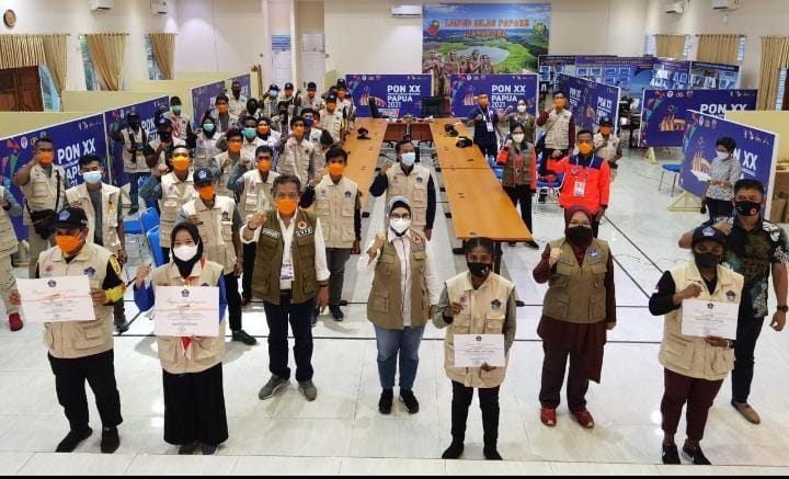 Ketua Satgas Prokes PON XX Papua, Prasinta Dewi menyampaikan apresiasi kepada seluruh pihak yang telah mendukung dalam program penguatan prokes tersebut, khususnya kepada para relawan.