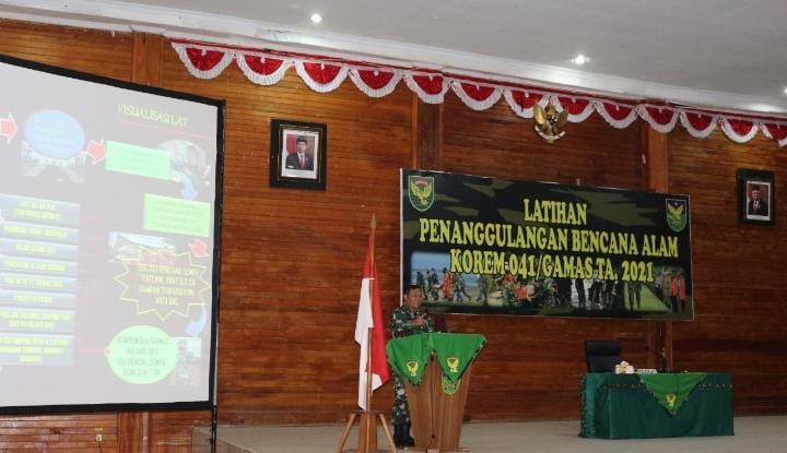 Ini mendasari Korem 041/Garuda Emas, Kodam II/Sriwijaya menggelar Latihan Penanggulangan Bencana TA. 2021, yang dibuka langsung oleh Danrem 041/Gamas di Gedung Balai Prajurit Korem 041/Garuda Emas Kota Bengkulu, Senin 8 November 2021.