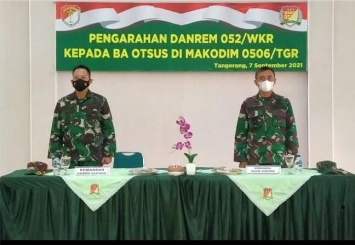 Kodam Jaya, TANGERANG – potensinusantara.co.id – Bertempat di Aula Palapa Makodim 0506/Tgr Jalan TMP Taruna Kelurahan Suka sari Kecamatan Tangerang Kota Tangerang, Dandim 0506/Tgr Kolonel Inf Bambang Herry Tugiyono memdamoingi Brigjen TNI Purwito Hadi Wardhono,SE., M.Hum Danrem 052/Wkr memberikan pengarahan kepada kepada Prajurit Ba Otsus di Makodim 0506/Tgr, dihadiri 50 orang, Selasa (07/09/2021).