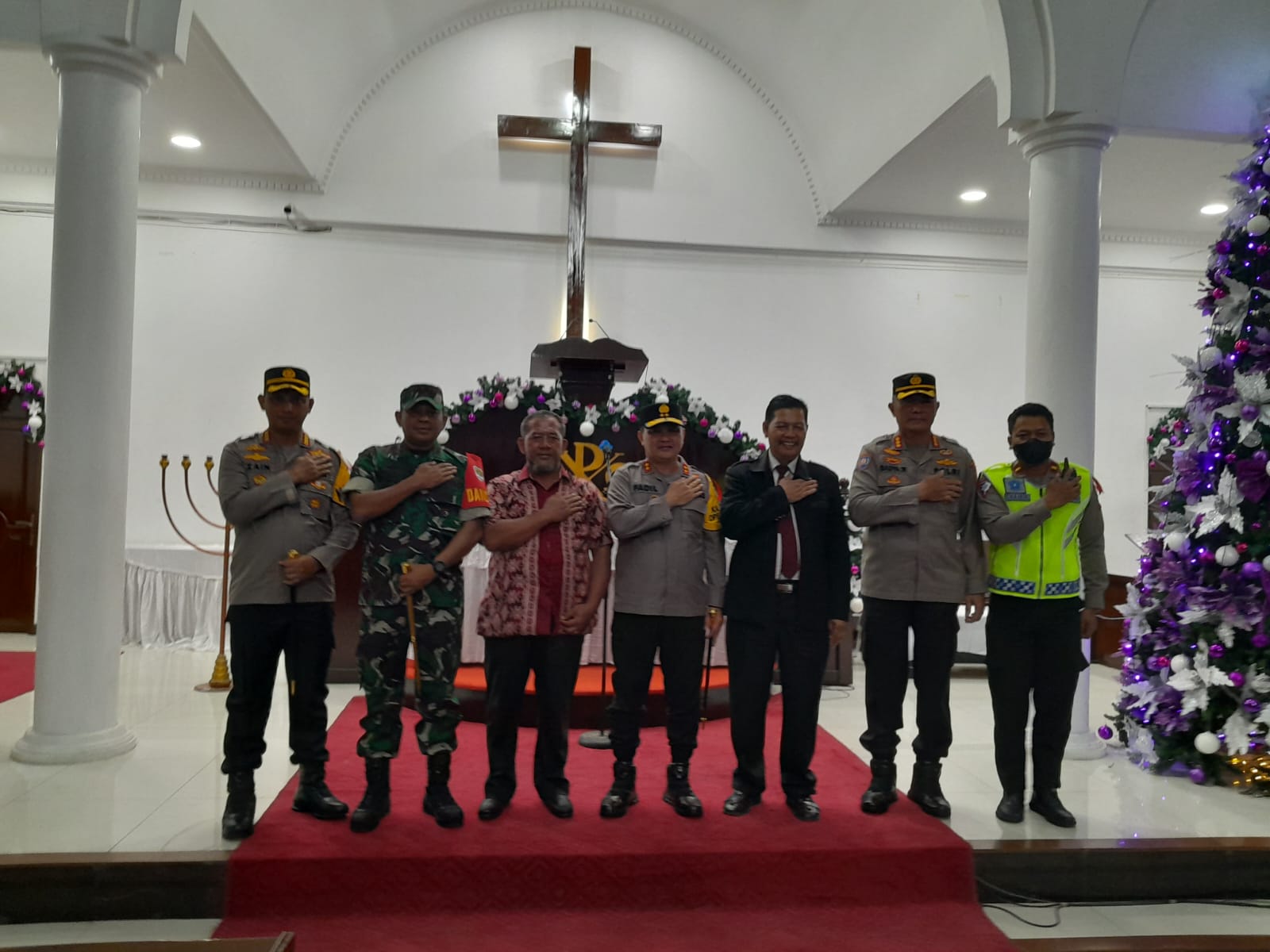 TANGERANG – Potensinusantara.co.id – Jelang Nataru Dandim 0506/Tgr Letkol Inf Ali Imran mendampingi Kapolda Metro Jaya Irjen Pol Drs H. Moch Fadil Imran M. mengecek langsung keamanan di gereja HKBP Tanah Tinggi, Kelurahan Tanah Tinggi Kecamatan Tangerang, Sabtu (24/12/2022).