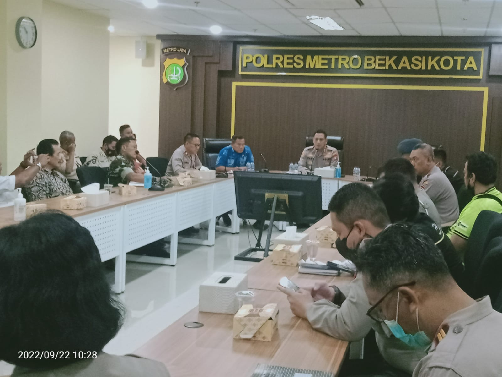 Kota Bekasi – potensinusantara.co.id – Bertempat di Polres Metro Bekasi Kota Jl.Pangeran Jayakarta Kel.Harapan Mulya Kec.Medan Satria Kota Bekasi. Kamis (22/9/2022). Danramil 01/Kranji Mayor Inf Choirul Anam bersama unsur terkait mengikuti rapat Pengamanan Pertandingan Sepak Bola Liga 3 Seri 1 Jawa Barat.