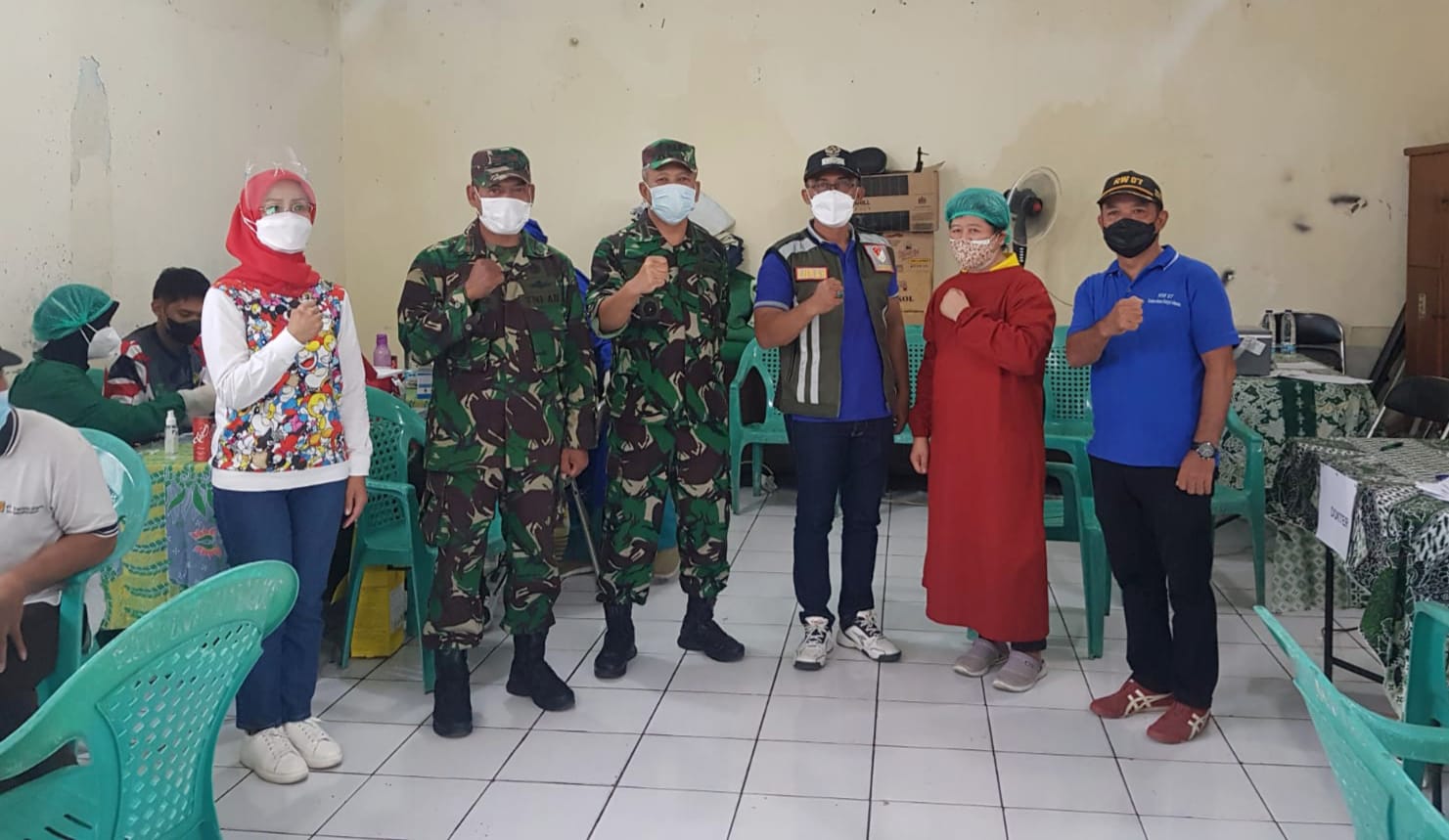 ”Pada Giat Serbuan Vaksinasi yang dilaksanakan selama 2 hari Sabtu/Minggu (16-17/10/21) dengan target 500 dosis di gedung Madrasah Muhammadiyah Gg. Sengon RW.07 Kayu manis, Ka Kesdam Jaya datang ke lokasi tempat vaksin ini untuk melihat sejauh mana pelaksanaan kegiatan serbuan vaksinasi yang sudah dilakukan oleh Koramil 02/Matraman yang bekerjasama dengan Kesdam Jaya, Polkes 00 09 04 Matraman, Puskesmas Kayu manis dan Ketua RW. 07 selaku ketua satgas Covid-19 tingkat RW.