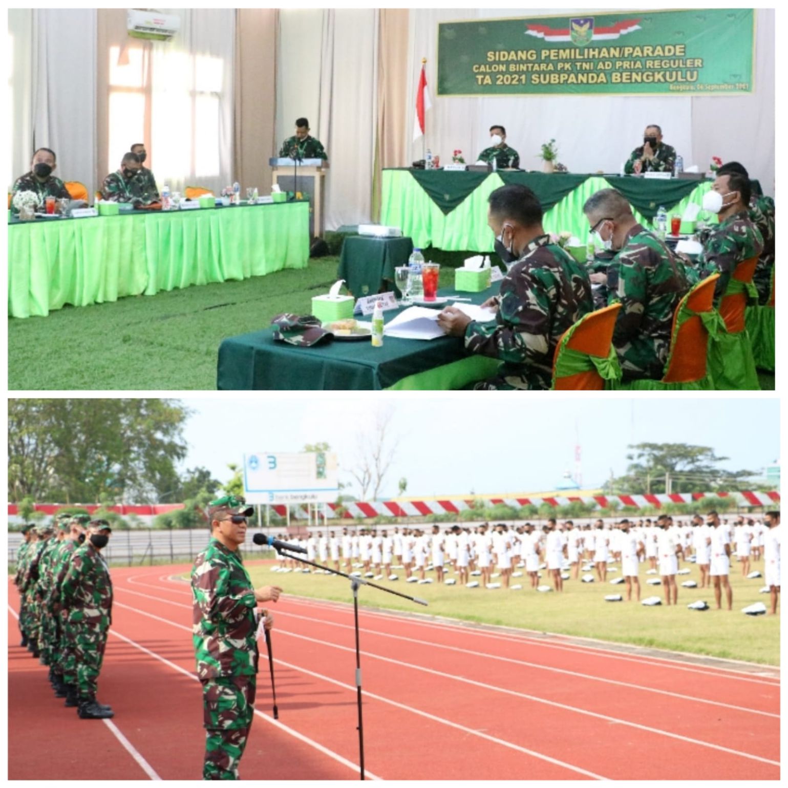 Ini ditekankan oleh Komandan Korem 041/Gamas Brigjen TNI Yanuar Adil, saat memimpin Sidang Pemilihan / Parade Calon Bintara PK TNI AD Pria Reguler TA 2021 Subpanda Bengkulu di Stadion Semarak, Kota Bengkulu, Senin (6/9/2021).