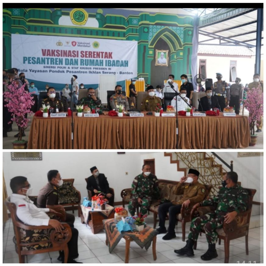 “Hari ini saya bersama rekan-rekan dari Forkopimda Banten meninjau pelaksanaan vaksinasi yang dilakukan di Yayasan Pondok Pesantren Ikhlas Salman Al-Farisiy Serang, Dimana kegiatan ini merupakan bentuk upaya kita dalam penanganan Covid-19 di Indonesia khususnya di wilayah hukum Korem 064/MY”.