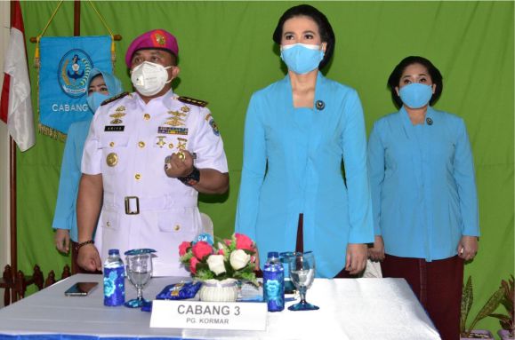 Komandan Rumkital Marinir Cilandak (RSMC) Kolonel Laut (K) dr. Ariyo Sakso Bintoro, Sp.U didampingi Ibu Ketua Cabang 3 PG Kormar Ny. Vanda Aryo Sakso Bintoro Beserta Pengurus Cabang 3 PG Kormar ikuti jalannya Upacara peringatan Hari Ulang Tahun ke-75 Jalasenastri bertemakan “Jalasenastri berperan serta mewujudkan keluarga yang tangguh, produktif dan inovatif di masa pandemi Covid-19 menuju Indonesia Maju” secara Virtual di ruang Lounge Room RSMC Cilandak Jakarta Selatan. Jumat, (27/8/2021).