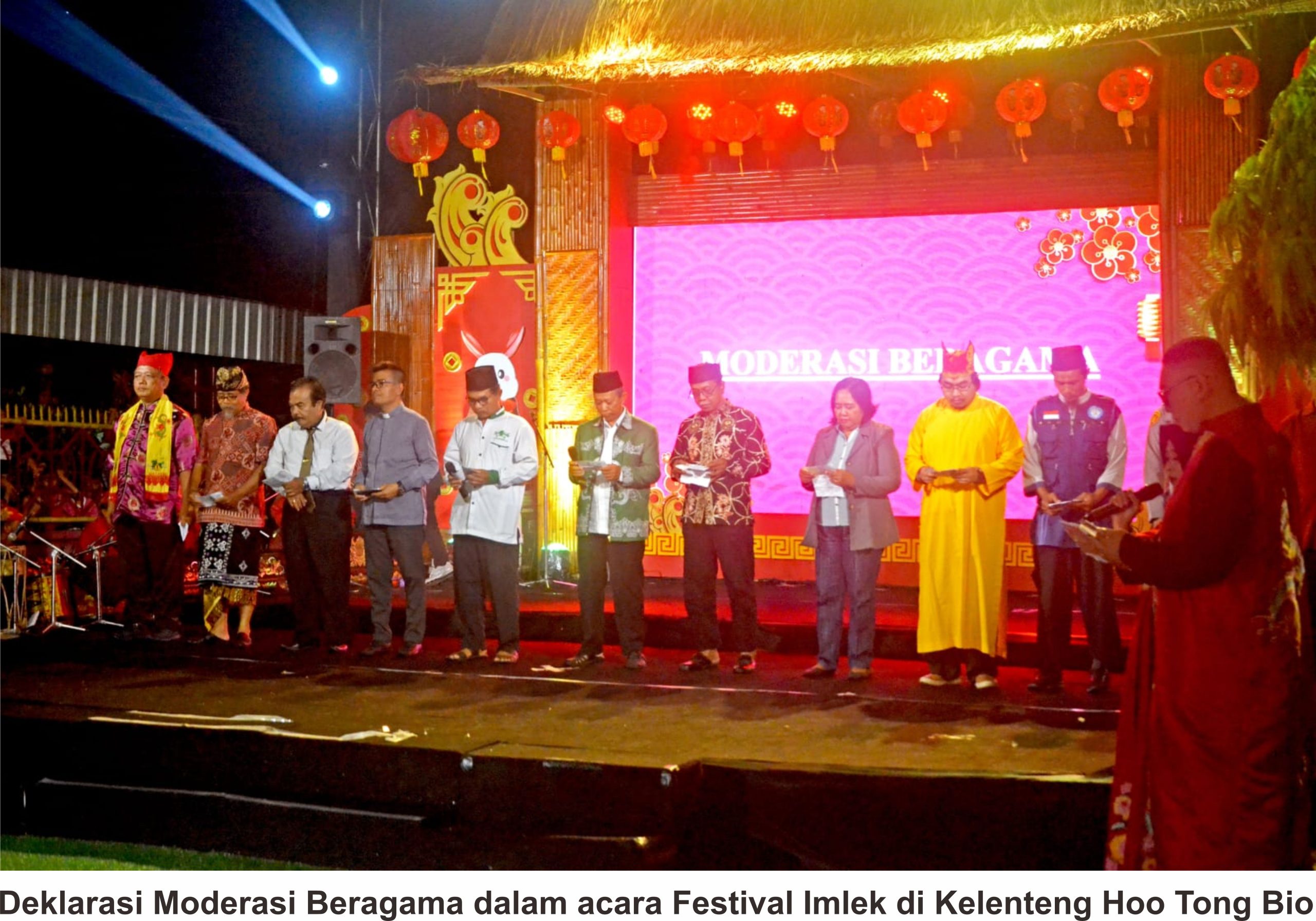 Banyuwangi, potensinusantara.co.id- Perayaan Tahun Baru Imlek yang dikemas dalam Festival Imlek dan menjadi rangkaian pelaksanaan Banyuwangi Festival (Bifest) 2023, menjadi momentum penting kerukunan umat beragama di Banyuwangi. Bersamaan dengan acara yang digelar di halaman Kelenteng Hoo Tong Bio, Sabtu (4/1) malam, resmi dideklarasikan terbentuk “Kampung Moderasi Beragama” yang diikuti oleh para pemuka agama yang Islam, Kristen, Katholik, Hindu dan Budda.