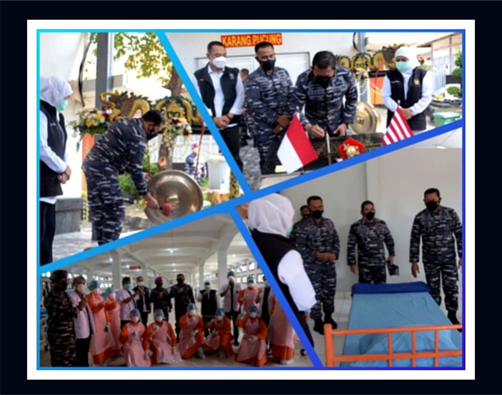 Surabaya -potensinusantar.co.id- Di Pangkalan Marinir Surabaya, Kepala Staf TNI Angkatan Laut (Kasal) Laksamana TNI Yudo Margono SE.MM. didampingi Komandan Korps Marinir (Dankormar) Mayor Jenderal TNI (Mar) Suhartono dan Gubernur Jawa Timur Dra. Hj. Khofifah Indar Parawansa, M.Si. meresmikan Gedung Karang Pucung sebagai Rumah Sakit Darurat Covid-19 yang di gelar di Kesatrian Usman Pangkalan Marinir (Lanmar) Surabaya. Jalan Jambi Surabaya, Darmo, Kecamatan. Wonokromo, Kota Surabaya, Jawa Timur. Jumat (20/8/2021).