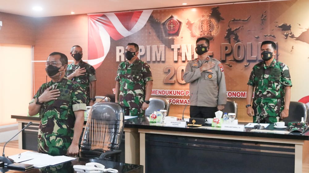 Tanjungpinang -potensinusantara.co.id- Komandan pangkalan utama TNI Angkatan Laut IV (Danlantamal IV) Laksamana Pertama TNI Dwika Tjahja Setiawan, S.H.,M.H.,M.Tr.Opsla hadir dalam Rapat Pimpinan (Rapim) TNI-Polri Tahun 2022 yang dihadiri Presiden Republik Indonesia Joko Widodo secara virtual di Markas Kogabwilhan I, Tanjungpinang, Selasa (1/3/22).