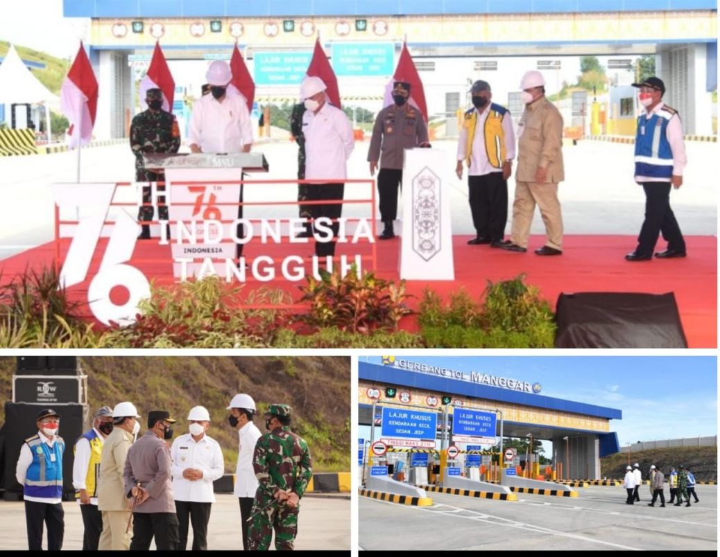 BALIKPAPAN – potensinusantara.co.id – Presiden Republik Indonesia Joko Widodo meresmikan Ruas Tol Balikpapan-Samarinda Seksi Balikpapan-Samboja (Seksi 1 dan Seksi 5) di Gerbang Tol (GT) Manggar, Balikpapan, Kalimantan Timur, Selasa (24/08), dengan tetap menerapkan protokol kesehatan yang ketat. Dua seksi akhir dari jalan tol pertama di Pulau Kalimantan ini akan melengkapi tiga seksi yang telah beroperasi terlebih dahulu pada Desember 2019.