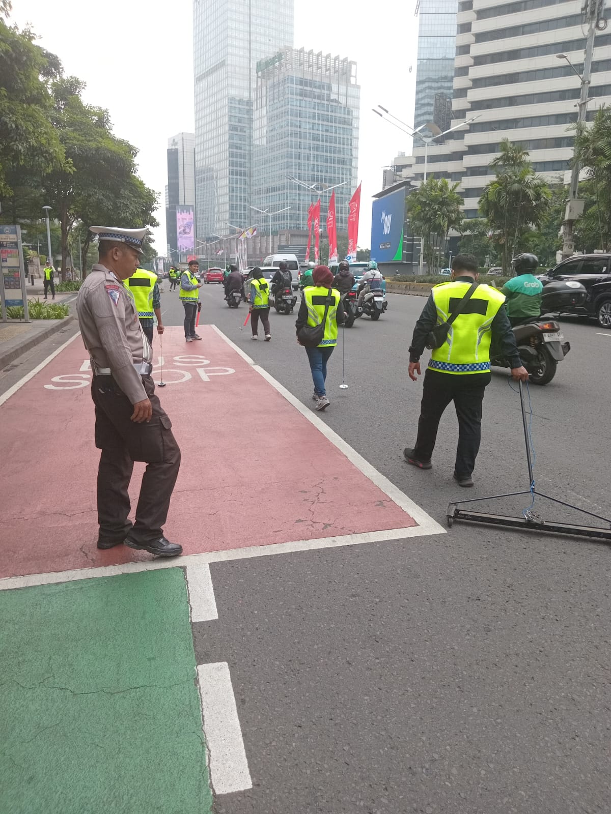 Direktur Lalu Lintas Polda Metro Jaya Kombes Pol. Latif Usman Mengatakan Penyisiran ranjau paku dimulai dari Offramp Semanggi, B5, bunderan Patung Kuda, IRTI, Hingga depan Akomodasi.
