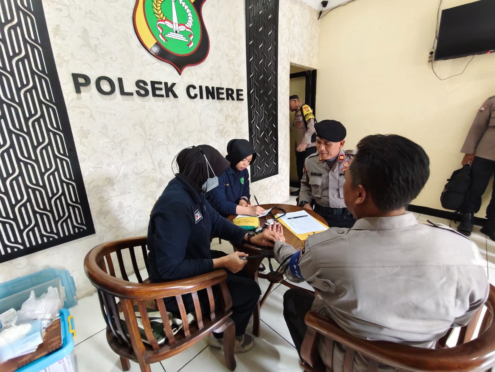 Pemeriksaan kesehatan ini dilakukan secara menyeluruh ke setiap polsek di wilayah Kota Depok serta di posko OMP yang berada di Polres Metro Depok. Kegiatan ini meliputi pemeriksaan kesehatan, konsultasi kesehatan, pemberian obat sesuai keluhan, dan pemberian vitamin kepada para anggota.