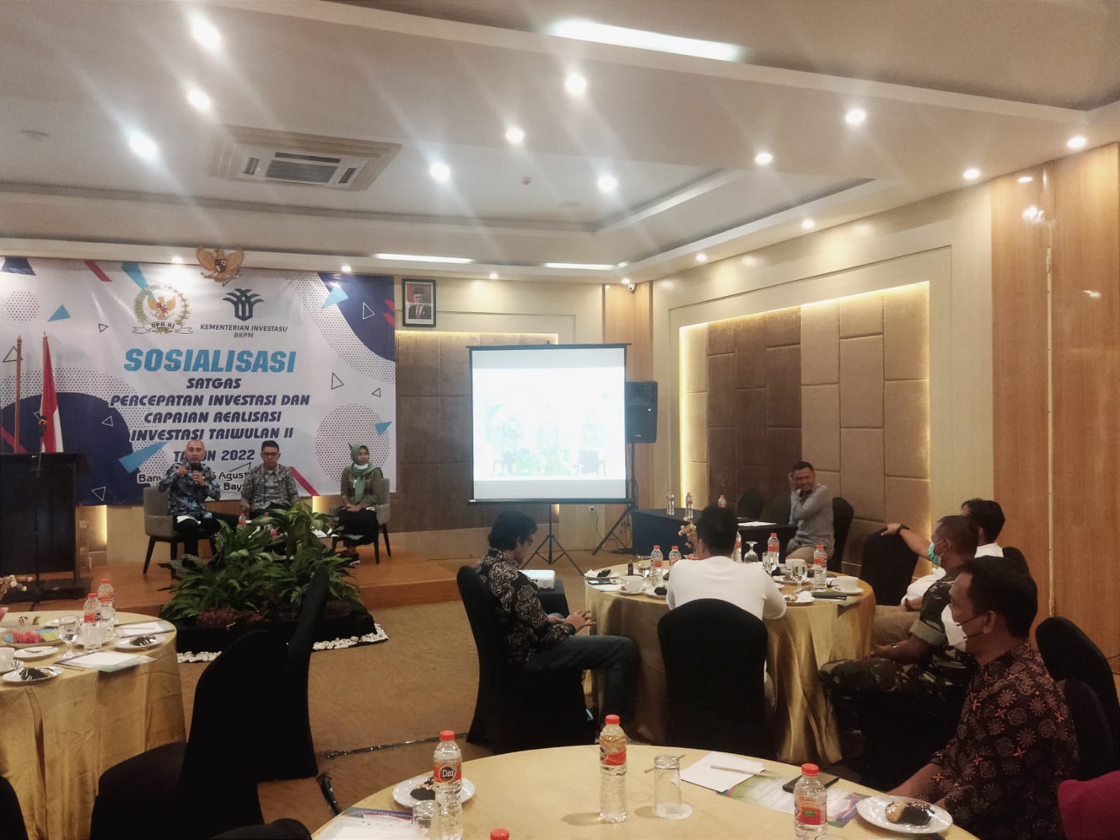 Sosialisasi yang bertema “Satgas Percepatan Investasi dan Capaian Realisasi Investasi Triwulan II Tahun 2022” itu diadakan di Ballroom Hotel Luminor Banyuwangi pada Jumat (5/8/2022) pukul 09:00 WIB sampai selesai.
