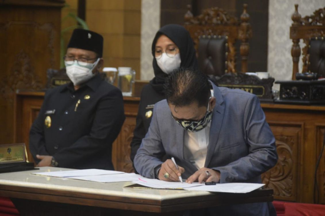 Pengambilan keputusan digelar dalam rapat paripurna yang dilaksanakan secara virtual terbatas dipimpin Wakil Ketua DPRD, Ruliyono,SH, didampingi H.M.Ali Mahrus,S.HI dan Michael Edy Hariyanto, SH serta diikuti seluruh anggota dewan dari lintas fraksi, Senin (09/08/2021).