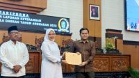 Banyuwangi, potensinusantara.co.id- DPRD Kabupaten Banyuwangi menggelar rapat paripurna dengan agenda penyampaian Laporan Keterangan Pertanggungjawaban (LKPJ) tahun anggaran oleh Bupati Banyuwangi, Ipuk Fiestiandani, senin pada pekan lalu. Rapat paripurna dipimpin Wakil Ketua DPRD, Muhammad Ali Mahrus dan dikuti anggota dewan dari lintas fraksi, hadir pula Bupati Banyuwangi, Ipuk Fiestiandani, Wakil Bupati, H. Sugirah, Sekretaris Daerah, Mujiono, Asisten, Staf Ahli Bupati, jajaran Kepala SKPD. Camat, Kepala Desa dan Lurah se Banyuwangi. Dalam LKPJ Tahun Anggaran 2023, Bupati Ipuk Fiestiandani menyampaikan sejumlah capaian kerja Banyuwangi tahun 2023. Pada Tahun 2023 berbagai program kerja dan inovasi telah dilaksanakan serta secara nyata membawa manfaat positif dalam meningkatkan kesejahteraan masyarakat Banyuwangi. Beberapa capaian kinerja Pemerintah Kabupaten Banyuwangi dapat dilihat pada realisasi dan capaian Indikator Kinerja Utama. Indeks Pembangunan Manusia (IPM) Kabupaten Banyuwangi pada tahun 2023 meningkat menjadi 73,79 dari tahun sebelumnya 2022 sebesar 73,15. ” Pemerintah Kabupaten Banyuwangi terus berupaya untuk meningkatkan indeks pembangunan manusia dengan berbagai program dan inovasi, ” ucap Bupati Ipuk dihadapan rapat paripurna. Persentase penduduk miskin Kabupaten Banyuwangi menurun dari 7,51persen pada tahun 2022 menjadi 7,34 persen pada tahun 2023. Realisasi tahun 2023 telah melebihi target yang ditetapkan, dengan capaian sebesar 102 persen. Indeks Gini sebesar 0,351 pada tahun 2023, hal ini dialami hampir mayoritas daerah di Jawa Tmur. Setidaknya 27 kabupaten/kota di Jawa Timur meningkat indeks gininya, bahkan Provinsi Jawa Timur mengalami kenaikan indeks gini.“ Pertumbuhan Ekonomi Banyuwangi pada tahun 2023 meningkat dari tahun sebelumnya menjad 5,03 persen. Realisai tahun 2022 telah melebihi target yang ditetapkan, dengan capaian sebesar 110,79 persen , ” ucap Bupati Ipuk. Begitu juga pendapatan per kapita Kabupaten Banyuwangi yang pada tahun 2023 mengalami peningkatan menjadi sebesar Rp. 58,086 juta dibandingkan tahun 2022 yang sebesar Rp. 53,822 juta, yang juga lebih tinggi jika dibandingkan dengan daerah sekitar. Indeks kepuasan masyarakat (IKM) pada tahun 2023 mencapai sebesar 91,50. hal ini didasarkan hasil survei kepuasan masyarakat terhadap pelayanan publik yang telah dilaksanakan pada tahun 2023. Realisasi tahun 2023 telah melebihi target yang ditetapkan, dengan capaian sebesar 100,97 persen.