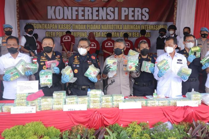 Banda Aceh, potensinusantara.co.id- Hasil kolaborasi Direktorat Reserse Narkoba (Ditresnarkoba) Polda Aceh, Polda Lampung, dan Kanwil Bea Cukai Aceh mengungkap kasus peredaran narkotika jaringan internasional Thailand-Indonesia, Senin (14/2) lalu di Bandar Lampung.