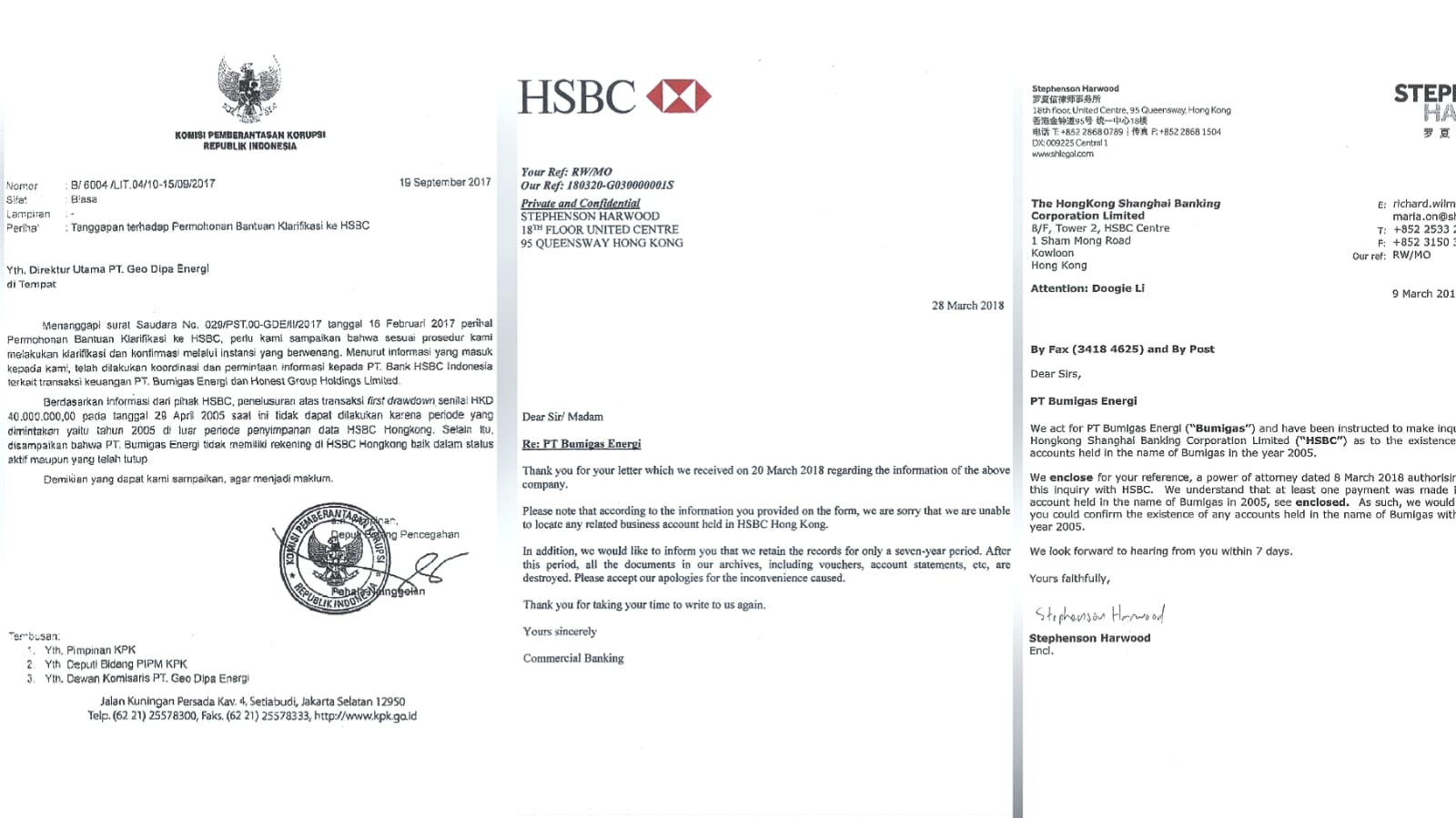 Bahkan PT Bumigas Energi sudah mendatangi PT HSBC Indonesia dan menanyakan kepada HSBC Indonesia dan dijawab dalam audiensi tersebut bahwa mereka tidak pernah mengeluarkan informasi apapun kepada KPK. Kami menduga isi atau konten dari Surat Deputi Pencegahan KPK Pahala Nainggolan adalah informasi yang HOAKS dan menyesatkan.