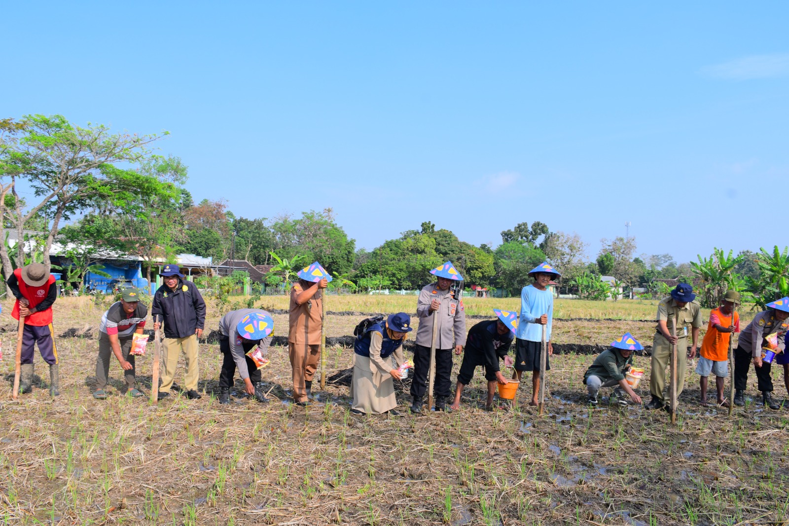 Penanaman dimulai pukul 08.00 WIB dan dihadiri oleh Kabag SDM Polres Karanganyar AKBP Yohanes Trisnanto, S.H., M.H. yang turut didampingi oleh Kasubbagwatpers Bag SDM AKP Rochmad Hardono, S.H., M.H., serta Kapolsek Tasikmadu AKP Teguh Sardiyanto, S.H., M.H. Hadir pula perwakilan dari Dinas Pertanian dan instansi terkait lainnya, termasuk Manajer Area PT Solusi Organik Indonesia Bapak Ridho, Kepala Desa Kalijirak Bapak Tri Joko Sulistyo, serta Koordinator Penyuluh Pertanian Bapak Suluh Puji Kristanto, S.Pt.