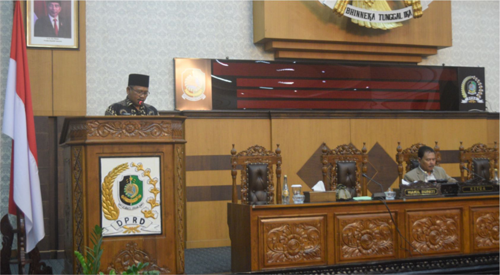 Rapat paripurna dipimpin Wakil ketua DPRD, Ruliono,SH, hadir Wakil Bupati, H.Sugirah, Sekretaris Daerah,H.Mujiono, jajaran SKPD dan Camat.