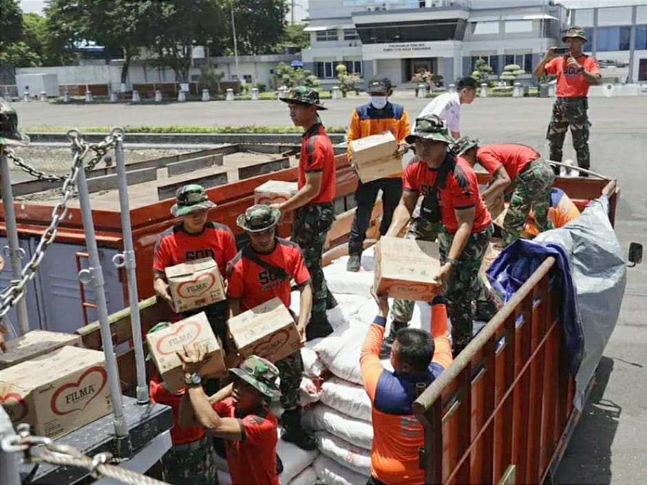 Pangdam V/Brawijaya, Mayjen TNI Farid Makruf, MA langsung bergerak cepat menggalang bantuan bahan pangan bekerjasama dengan Forkopimda Jatim, Polda Jatim dan jajaran TNI Angkatan Laut.
