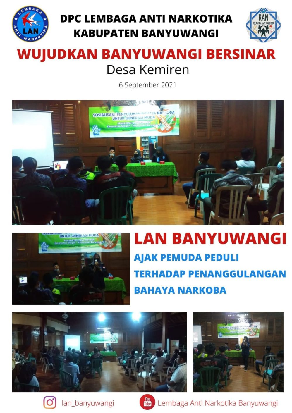 Kegiatan penyuluhan disambut baik oleh perangkat desa kemiren yang mewakili bapak kepala Desa. Dirinya berharap bahwa anak muda di lingkungan desa kemiren ini terhindar dari bahaya narkoba.