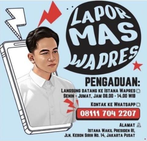Wapres Gibran juga memfasilitasi laporan via WhatsApp di nomor 081117042207, sebagai alternatif laporan.