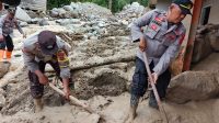 Agam, potensinusantara.co.id – Personel Polres Agam bersama Polsek Tanjung Raya terus melakukan penanganan dampak banjir bandang di wilayah Kabupaten Agam. Pada Senin (29/12/2025), petugas melaksanakan kegiatan pembersihan rumah warga serta normalisasi aliran Sungai Muara Pisang yang terdampak banjir bandang di Jorong Pasar Maninjau, Kenagarian Maninjau.