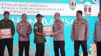 Kegiatan peletakan batu pertama ini juga dirangkai dengan pemberian bantuan sembako sebanyak 200 paket untuk warga setempat
