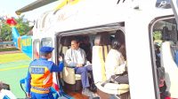 Gubernur DKI tampak didampingi Kakorpolairud. Mereka bersiap untuk terbang pada pukul 08.40 WIB.