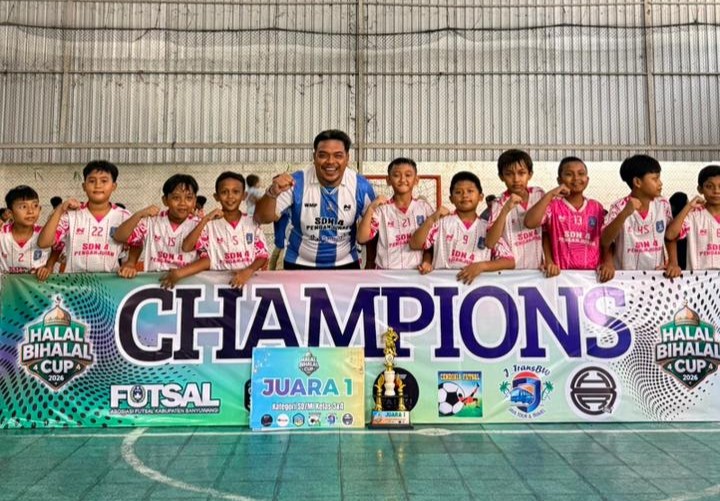 Banyuwangi Jawa Timur potensinusantara.co.id – Ajang turnamen futsal Halal Bihalal Cup 2026 untuk kategori SD/MI Kelas 3 dan 4 telah memasuki babak puncak yang digelar pada Sabtu, 18 April 2026. Dua laga penentuan digelar secara berurutan, di mana SDN 4 Penganjuran berhasil keluar sebagai juara pertama setelah menaklukkan lawannya di babak final dengan skor meyakinkan 2-0, untuk kemenangan SDN 4 Penganjuran