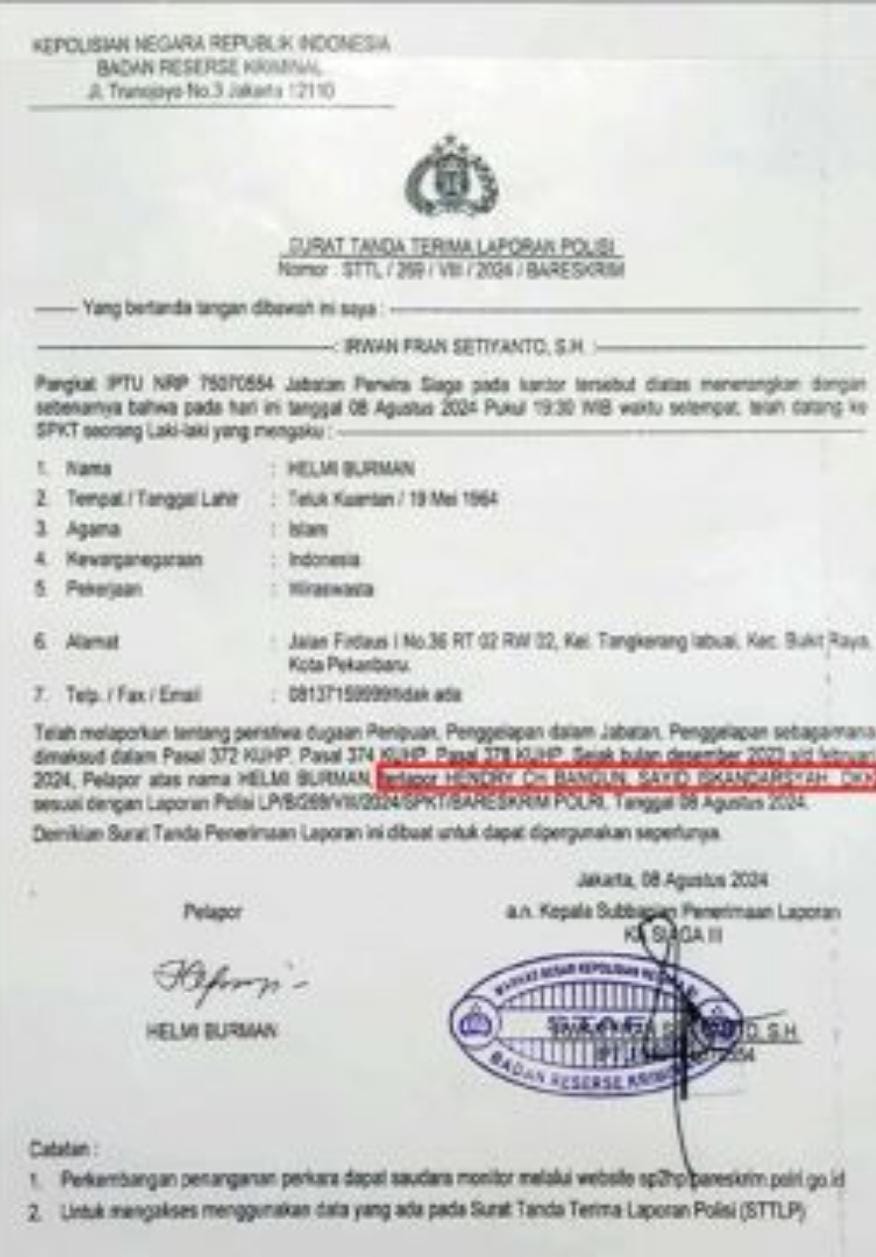 Menurut Kabid Humas Polda Metro Jaya, Kombes Pol. Ade Ary Syam Indradi sudah ada 8 orang staf PWI Pusat telah dimintai keterangan, termasuk ek Sekjen PWI Pusat Sayid Iskandarsyah yang didampingi kuasa hukumnya, HMU.Kurniadi. Sedangkan terlapor HCB tidak hadir atau mangkir