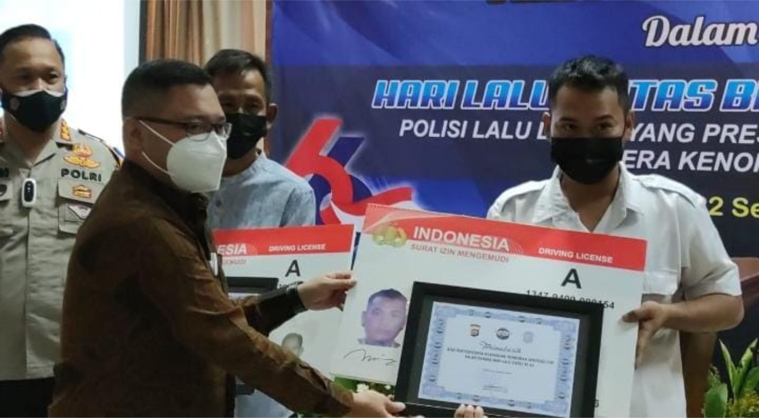 Pemberian SIM tersebut diberikan langsung oleh Dirlantas Polda Banten Kombes Pol Rudy Purnomo kepada Daelami warga Bojonegara yang mendapatkan SIM A, Septiani warga Taktakan Kota Serang mendapatkan SIM A, dan Bondan warga Walantaka Kota Serang mendapatkan SIM C