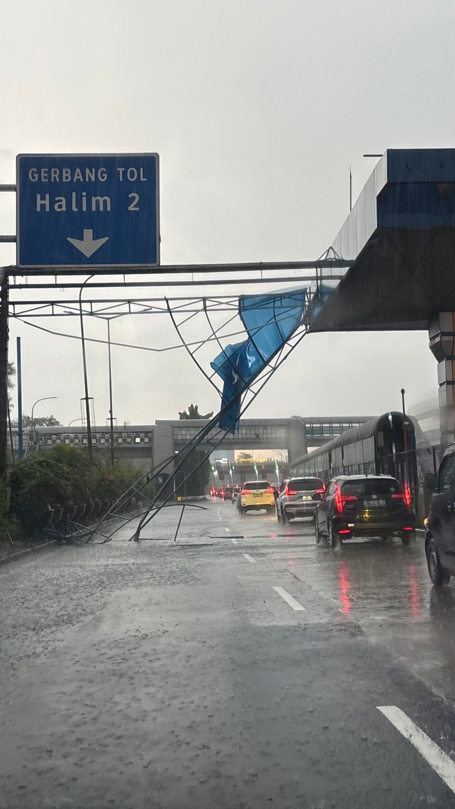 Selain pohon tumbang, juga terjadi gangguan fasilitas berupa rangka papan iklan yang roboh di area Gerbang Tol Halim 2 Jalan Tol Dalam Kota serta rangka Gerbang Tol Halim yang mengalami kerobohan akibat kondisi cuaca.
