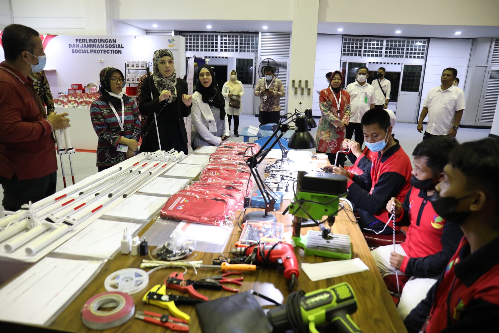 Penyerahan Bantuan alat bantu penyandang disabilitas sebanyak 6.581 unit, terdiri atas: Kursi roda elektrik 757 unit, Motor niaga roda tiga 354 unit, Tongkat adaptif 5.420 unit, dan Sensor air disabilitas netra 50 unit.(sultan)