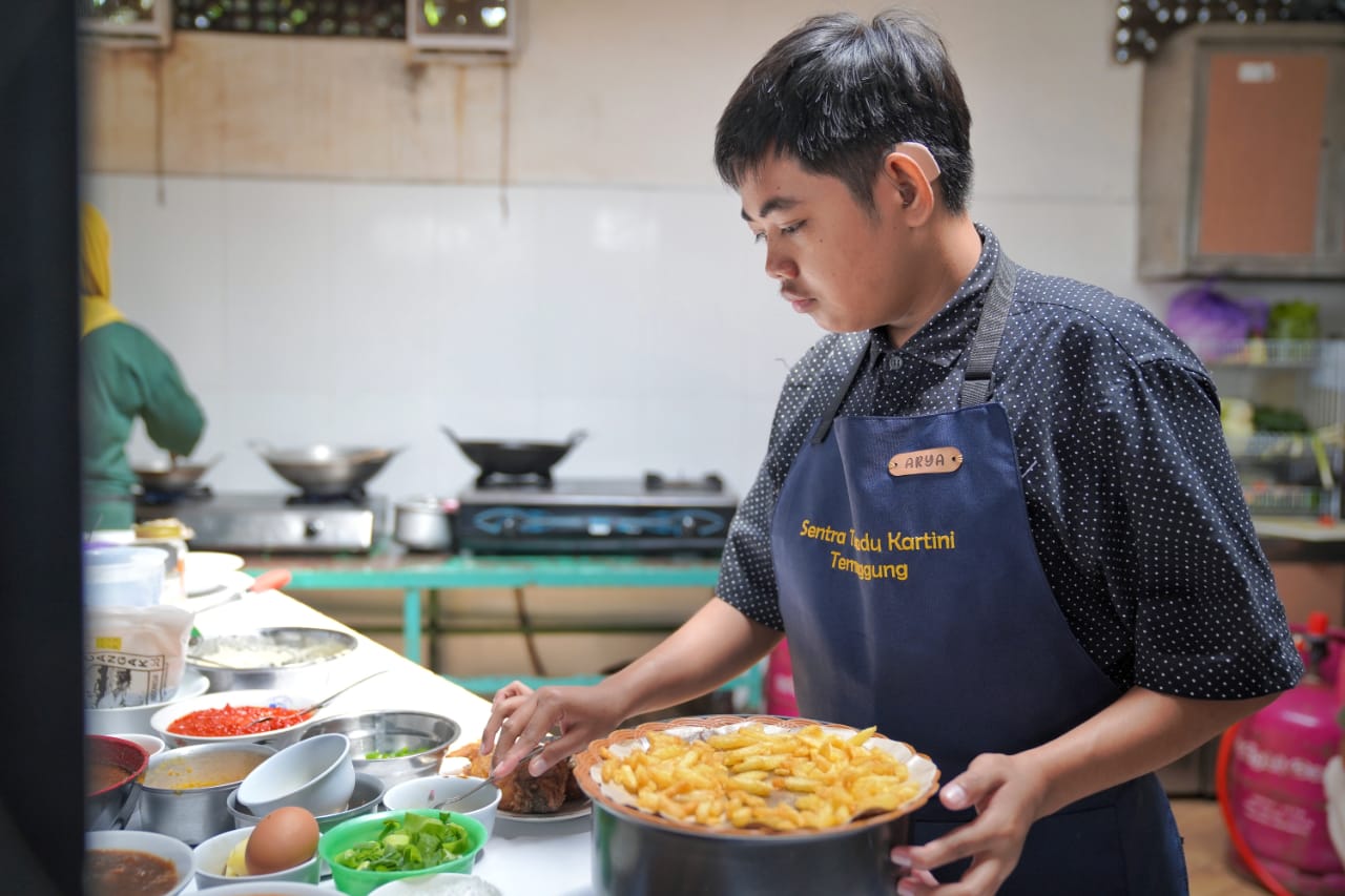 Keterbatasan fisik berupa rungu wicara bukan halangan bagi Ari (21), yang bekerja sebagai pramusaji di Sentra Kreasi Atensi (SKA) Kartini di Temanggung, Jawa Tengah.