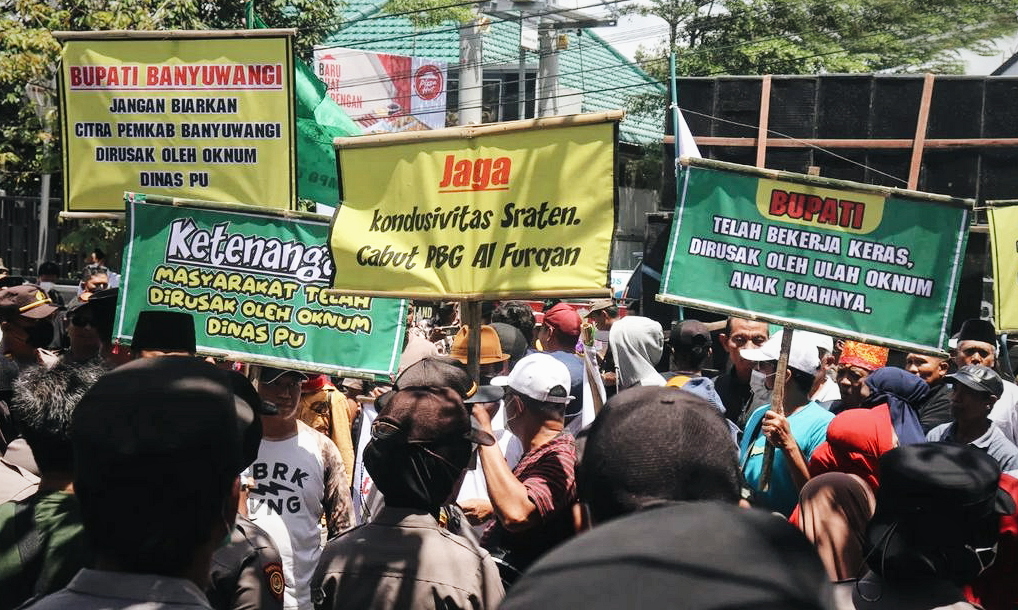 Massa yang tergabung dalam Aliansi Timur Raya meminta kejelasan terkait terbitnya surat Persetujuan Bangunan Gedung (PBG). Sebab diduga dalam pembangunan masjid yang berlokasi di Desa Sraten, Kecamatan Cluring, Banyuwangi, Jawa Timur, itu tak sesuai aturan pemerintah.
