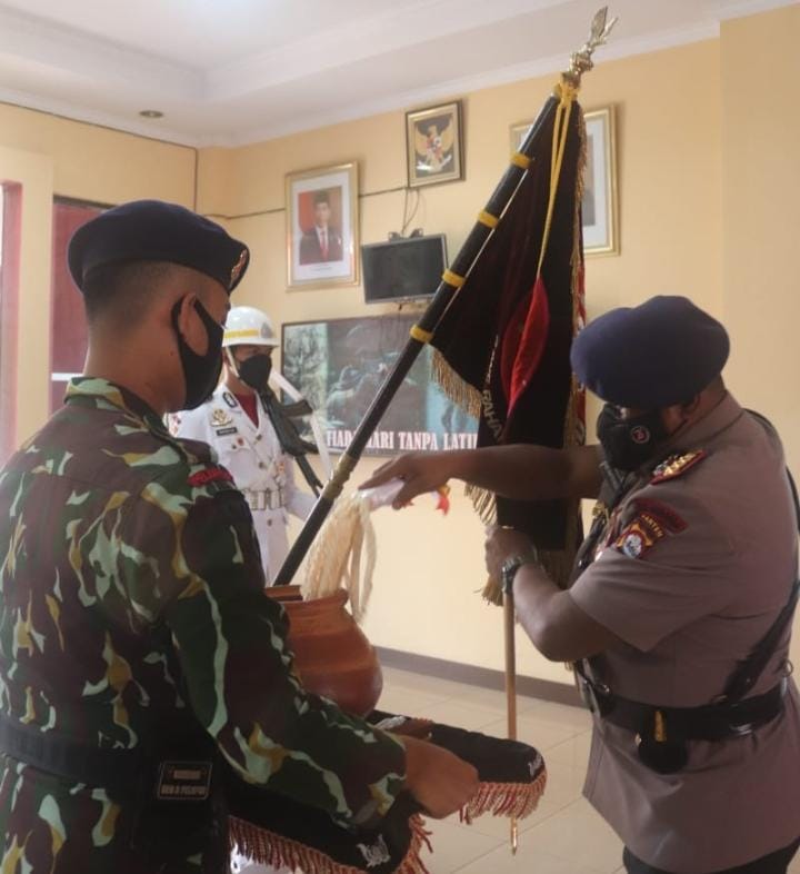 SERANG – potensinusantara.co.id – Dalam rangka memperingati Hari Ulang Tahun Korps Brimob Polri ke-76, Satuan Brimob (Satbrimob) Polda Banten melaksanakan pensucian Dhuaja Satbrimob Polda Banten ” Gawe Rahayu Kerta Bener ” di Mako Satbrimob Polda Banten pada Sabtu (13/11).