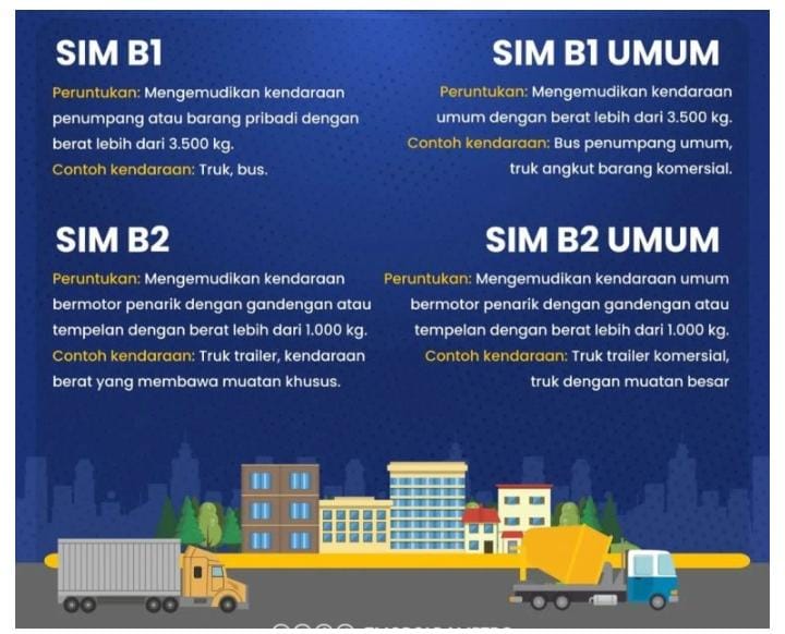 – SIM B untuk kendaraan yang bobotnya melebihi 3.500 kg.