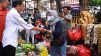 Dalam kesempatan tersebut, Presiden Jokowi turut menyerahkan sejumlah bantuan dan sembako kepada para pedagang.