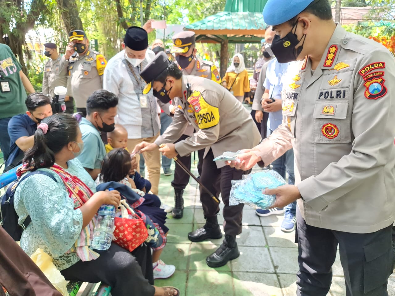 Kami juga menempatkan beberapa anggota dan membagikan masker kepada masyarakat, harapannya pengunjung pulang nanti senang dan selamat.