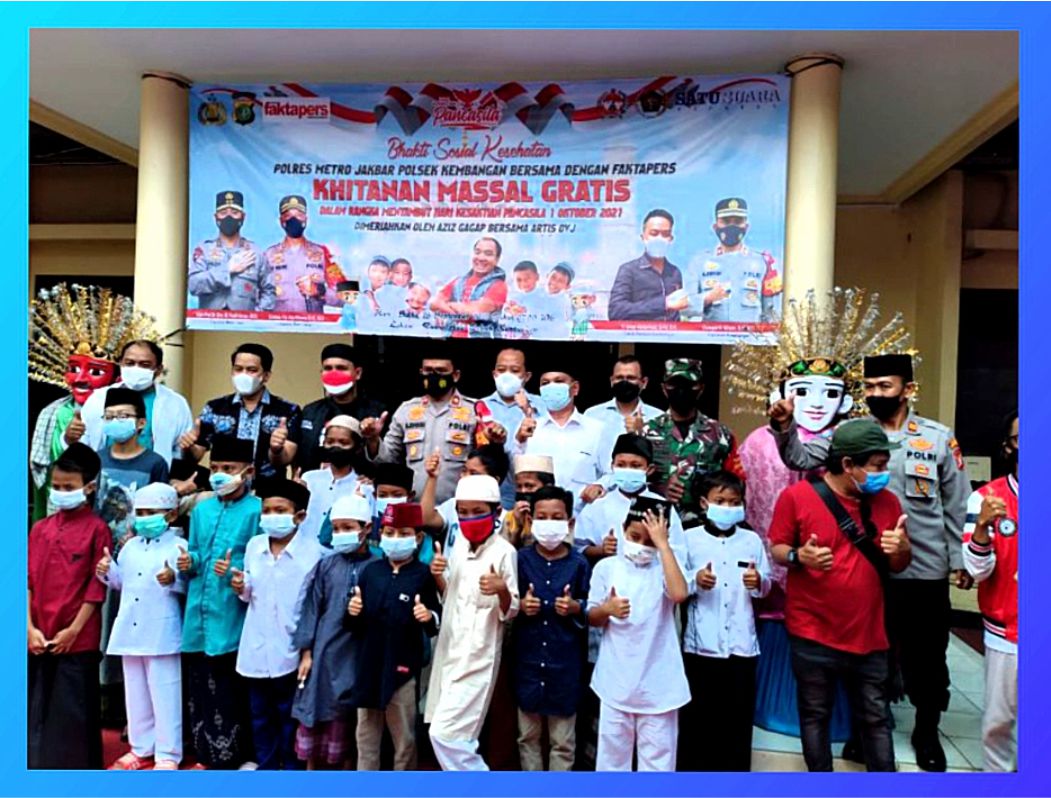 Sementara itu, Kapolsek Kembangan Kompol H Khoiri tampak meninjau saat pelaksanaan khitanan dilakukan. Khoiri mengatakan, kegiatan ini bekerja sama dengan Fakta Pers Media dan dimeriahkan oleh komedian Azis Gagap bersama artis OVJ.
