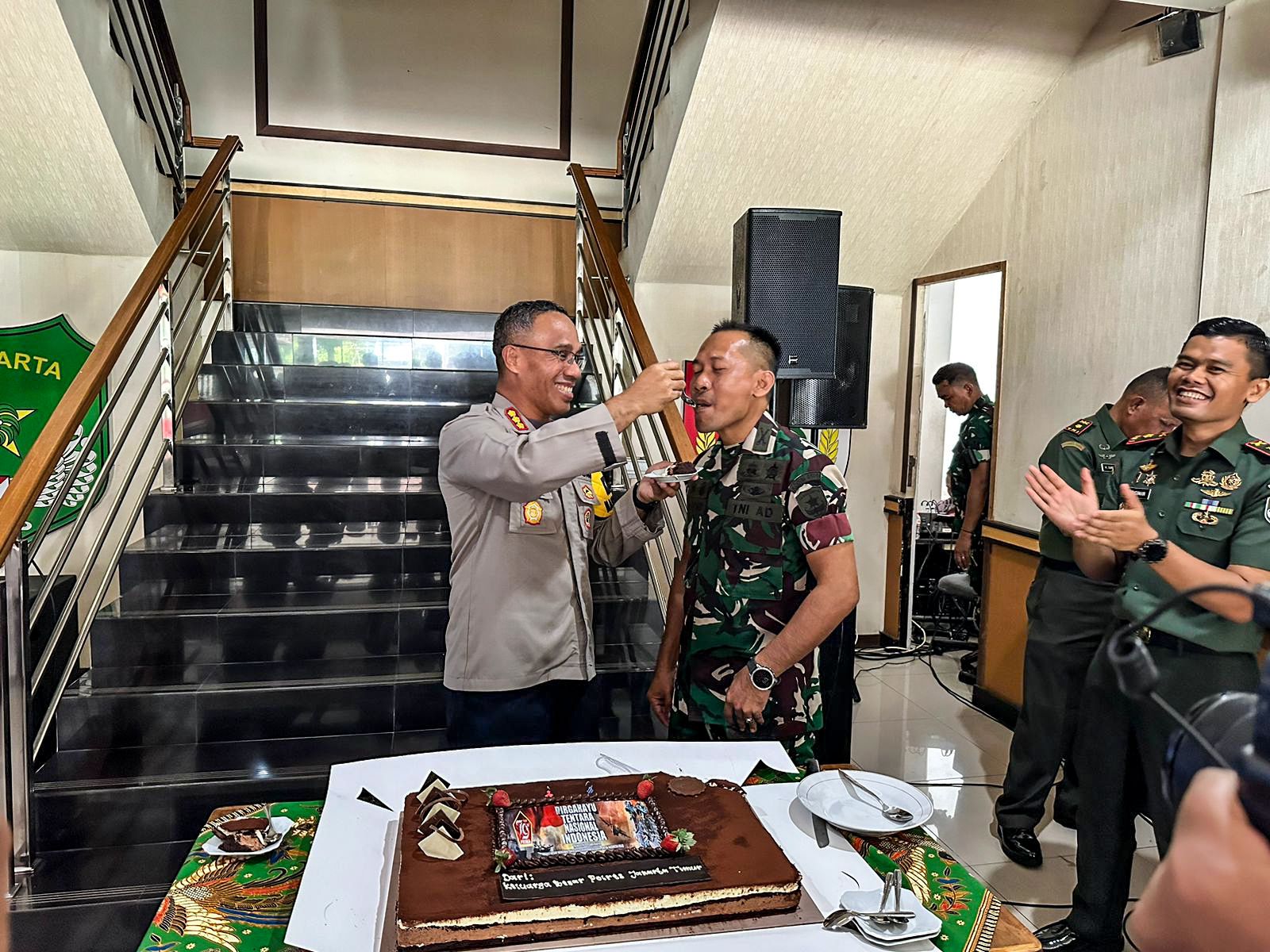 JAKARTA – potensinusantara.co.id – Di hari jadinya Tentara Nasional Indonesia (TNI) yang ke 79, di pimpin Kapolres Metro Jakarta Timur Kombes Pol Nicaolas Ary Lilipaly, S.I.K, M.H, M.Si bersama rombongan, memberikan Surprise ucapan selamat HUT TNI ke 79 dengan memberikan Tumpeng dan kue Ulang Tahun di Makodim 0505/JT, Senin (07/10/24).